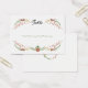 This rustic boho wedding invitation suite features hand-drawn autumn-hued foliage strung together to form a wreath. Modern calligraphy accents provide an elegant touch.