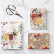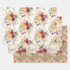 Beautiful boho-inspired wrapping paper sheets featuring vintage watercolor flowers mixed with greenery foliage and elegant pampas grass in various shades of red, blush, yellow and green.