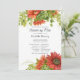 Trendy watercolor boho bridal or baby shower by mail invitation featuring bold red sunflowers and hops and herbs.