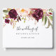 This rustic boho colourful floral wedding guest book is perfect for a modern wedding. The design features pink, purple, red, and burgundy watercolor peonies clustered into elegant bouquets with green foliage, inspiring natural beauty.