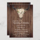 Rustic Boho Floral Cow Skull on Barnwood Wedding Invitation