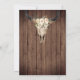 This rustic Boho Save the Date wedding announcement features a floral cow skull on a barnwood background. -
