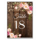 Rustic Boho Floral String Lights Wedding Table Number.