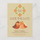 Cute lovebird owls are the stars of this modern rustic wedding invitation suite. The owl groom is wearing a fedora and bowtie and the owl bride is wearing a flower garland headband. The back is adorned with repeating flower graphics for a bohemian touch.