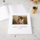A large rustic 12x12" boho wedding guest book featuring your favorite photo, paired with minimalist typography on a white background. This design balances relaxed elegance with earthy personal warmth, offering a meaningful space for guests to leave notes, memories, and love. Perfect for modern celebrations with a natural vibe, whether you're planning a barn wedding, a cozy reception, or something uniquely your own. Personalize this with your favorite engagement photo, casual everyday photo, or wedding photo. Make it match your own vibe.