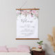 Rustic Boho Pink White Floral Wedding Welcome Sign Hanging Tapestry