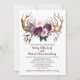 Rustic Boho Purple Plum Peonies Antlers Wedding Invitation