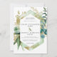Rustic Boho Teal Blue Botanical Gold Wedding Invitation