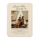 Cute "Save the Date" magnetic card with your photo on a boho-style tan background, your text in a stylish, trendy handwritten font, and accented with two cute hearts. Personalise with an engagement photo, your names, wedding date and location, and your wedding website.