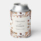 Rustic Boho Wildflower Wedding Can Cooler. Celebrate in style with these personalised wedding can coolers, where warm autumn hues set the scene. A stunning blend of burnt orange and terracotta leaves, cream and beige dahlias, and copper and rust-coloured roses creates a cohesive, seasonal look. Keep your guests’ drinks perfectly chilled while adding a personal touch—create a keepsake they’ll cherish.