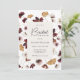 A lovely boho inspired bridal shower invitation with an abundant display of wildflowers in rich colours of burgundy red, gold, blush pink and white. The magical botanical elements pop with style and charm of an open meadow. Personalise the text template with your event details. If you need to add or remove lines of text or move the text around, select "edit using design tool" at the bottom of the personalise template. This will open the full editor and allow you to make additional edits. This invitation may be ordered as a printed invitation for mailing or as a paperless digital download for sending electronically.