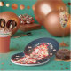 This fun bonfire birthday party plates is great for any type of bonfire party. The design features a blazing bonfire and sticks that are piercing marshmallows over a warm fire. The background is forest, with a blue sky and twinkle lights above. It's great for camping or a rustic outdoors party.