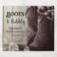 Toast the bride to be when you personalise the charming Rustic Boots and Bubbly Floral Wedding Shower sparkling wine Labels. Perfect for a casual country western barn party bridal shower. Each rustic chic custom bottle label features a black and white sepia tone farm photograph of a pair of brown leather cowboy boots and weathered barn wood with white flowers adorning the corners.