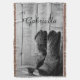 Customise the charming Rustic Boots Country Western Throw with the name of your cowgirl daughter, girlfriend, aunt or mum to create a personal keepsake gift. This rustic chic custom western theme blanket features a black and white digitally enhanced photograph of a pair of leather cowboy boots with a weathered barn wood background.