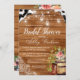 This Rustic Barn Wood Bridal Shower Invitation features white jar string lights, chic western cowhide, floral girly cowboy boots and a little bit of lace.