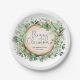 Impress your guests with this rustic botanical paper plate featuring lush watercolor greenery and fancy script lettering