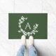 Rustic Botanical Monogram Initial Forest Green Doo Doormat