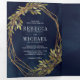 Rustic Botanical Olive Branch Navy Blue Wedding Tri-Fold Invitation