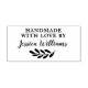 A stamp for your handmade products or art. Simple stamp design with "HANDMADE WITH LOVE BY" in vintage serif typography and a botanical branch. Personalise with your name in hand-lettered script calligraphy. Click on "Personalise this template" to change the wording. Visit our store for more designs!