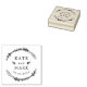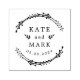 Custom-designed wedding stamp featuring hand-drawn style botanical wreath with couple names and wedding date.