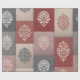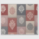 Give your gifts a touch of timeless charm with this rustic botanical wrapping paper. Inspired by vintage block printing, the design features elegant leafy medallions in muted tones of red, grey, cream, and blush, arranged in a patchwork-style layout.