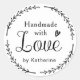 Custom-designed Handmade with Love stickers and labels for Crafts, DIYs, and products featuring your personalised brand name with black and white rustic botanical wreath and hand lettering design.