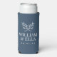 Full-colour custom printed can coolers make a fun and functional wedding favour your guests will love! Personalise the template with the bride and groom's names or monogram initials. Add your wedding date, the city, state or venue name or any other custom text. This modern rustic logo-style design features mixed typography in navy blue and white colours. Use the design tools to choose any background colour, edit the fonts or upload your own photos to create a completely custom wedding favour to match your wedding colours and style!