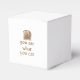 A stamp-style bread illustration paired with simple handwritten text gives this favor box a warm, rustic charm.