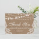 Rustic Bridal Shower Burlap String Lights Lace Thank You Card