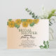 This rustic golden floral and leaf digital art is featured on the front over a golden ombre background with template bridal shower information. The back features horizontal stripes in matching colours. Fill in the personal information template fields, remove text and/or click customise to select a typeface colour, size and style your prefer.