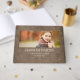 Rustic brown aged burlap linen and white personalised graduation guest book with your photo, school name, and graduation year on the front cover. Contact us for help with customisation and matching products.