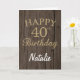 Rustic Brown and Gold Glitter 40th Birthday Card