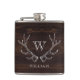 Rustic Brown Antler Monogrammed Groomsman Gift Hip Flask