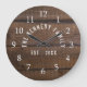 Family clock with a rustic wood background for your farmhouse style kitchen decor. Personalize with family name and established year for an unique farmhouse wall clock.