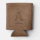 Rustic Brown Faux Leather Custom Monogram Name Can Cooler