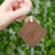 This custom keychain features a rustic faux brown leather texture with your monogram and name to personalise. From our hearts to yours, enjoy!