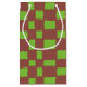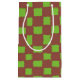 Rustic Brown Green Chequered Chequerboard Pattern Small Gift Bag