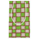 Rustic Brown Green Chequered Chequerboard Pattern Small Gift Bag