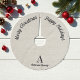 Rustic Brown Grey Christmas Tree Skirt with Faux Linen background, name and monogram. Use personalise this template option to change the text | Use customise further option to change the text style and colour if required. Also check out our store collection for more Christmas Tree Skirts.