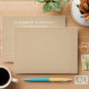 Rustic kraft brown paper textured appearance envelope with return address in white colour.