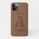 Rustic Brown Leather Custom Monogram Name Case-Mate iPhone Case