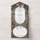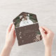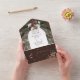 ALSO AVAILABLE WITH A QR CODE TO SCAN OR WITH DINNER SELECTION OPTIONS. This design features a rustic green pine and pinecone bouquet on a soft cocoa brown background with white flowers. It is accented with a white sparkle overlay to illustrate the magic of the beautiful winter holidays. Perfect for a Christmas or winter wedding. Personalised All-In-One invitations are a unique combination of both a beautifully printed custom invitation with an easy to tear off perforated RSVP postcard. And they are so easy to use! You simply fold, then seal the back flap with the three included clear stickers, and mail. And when your guests receive your custom invite, they just tear the perforated RSVP Card off and drop it back in the mail to you!