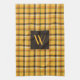 Rustic Brown Plaid Pattern Monogram kitchen towel.
