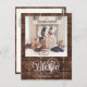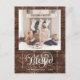 Send customisable and personalised holiday greetings to friends, colleagues and family in simple, chic, elegant and modern photo design festive, natural minimalist style cards! A beautiful calligraphy of " Blessed " frames on bottom of your photo in front. Below the calligraphy features your custom greeting message from your family name in modern typography. Reverse to reveal a beautiful brown trees on rustic dark brown wood background.