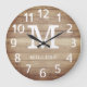 Rustic Brown Wood Family Name Monogram Farmhouse Large Clock