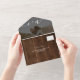 A rustic country brown wood all in one calligraphy wedding invitation with photo with rsvp, accommodations, details, and more info. With a modern and trendy script, add your initials.