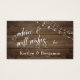 Give your celebrants and wedding event guests the opportunity to write personal, meaningful notes to you on the back of these pretty cards designed to match a growing invitation suite. Elaborate text overlays are designed using a fancy script font. On the front is "advice & well-wishes" and the blank is back for writing. Use my template fields to customise the cards with your names. The background is covered in a horizontal rustic brown wood pattern which has been accented with strands of bright white twinkling lights. Great for country, casual or mountain wedding event celebrations. This is part of a growing set filled with coordinating designs. // 73 // Designed by Melody Watson for Paper Muserie.