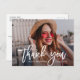 This design features a custom photo and white brush lettering. Feel free to change the image and thank you message at the back.