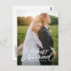 Just Married! Announce your elopement or wedding with this just married postcard. It featuring brush lettering with simple typography. Personalise by adding your names, wedding date, message and photos. This just married card is perfect for any wedding theme and season. It's available as a flat card, postcard and folded card.