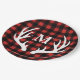 Rustic Buffalo Check Plaid & White Deer Antlers Paper Plate